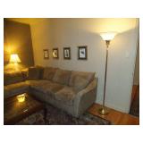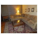 3500 square feet and garage, beige upholstered sectional, 4 poster queen sized bedroom set, Duncan Pfyffe dining table set and sideboard, tea cart, office furniture, men's valet, area rugs, corner curio cabinet, several unique lamps, lovely home décor throughout the home, half moon tables, bar stools, window coverings, many occasional tables, ALL in pristine condition, home decorators dream.
