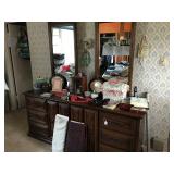 dishes, house wares, bedroom furniture; western-style metal bed frame