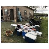 patio sets (one is wrought aluminum; the other is faux wicker)
