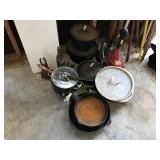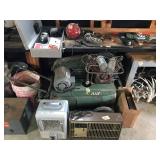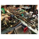 Hand and power tools, including drills, air compressors, sanders; lots of screws, bolts, nails of many different sizes; chains