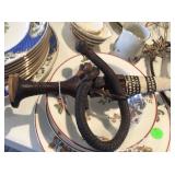 Home with great vintage glassware, garage full of tools, display cases and 1922 Parker Carousel horse. Inventory List 1911 Parker carousel horse Hand painted dishes Glass trays China Vintage barware Hand painted nippon Figurines Pitchers Bavarian glassware Light fixtures Vintage drop leaf table Tiffany style lamp Blown glass artist signatures Seth Thomas clock Milk glass Vintage stool Lighted display cases Wedgwood glassware Lamps Toy guns Unique decor Cups and saucers JVC receiver Printer Compac laptop Sewing machine in cabinet Office supplies Shredder Vacuum Carpet cleaner Vintage washboard Garage walk bench Saw horses Tool, clamps, saws Car ramps Power tools Chainsaw Generator Dollies Ladders Pellet gun Cub cadet grass cutter Hose reel Gas cans Heater Metal shelves Exercise equipment Kitchenware Recliner Table and chairs Art Mirror Stained glass Hutch Iron decor Candle sticks Stained glass lamps