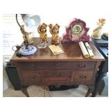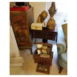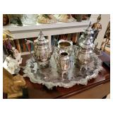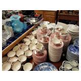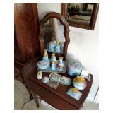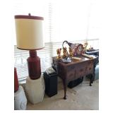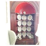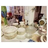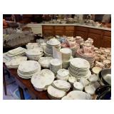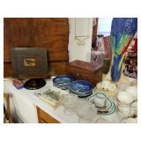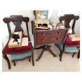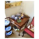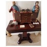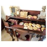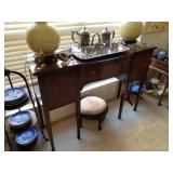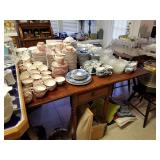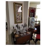 ANTIQUE OCTAGONAL SEWING CABINET TEA SETS *MULTIPLE TEA CART CRYSTAL CANDELABRAS SMALL CURIO TABLE NAPOLEON ERA PAINTED PORCELAINS BAROQUE BY WALLACE PUNCHBOWL DUNCAN PHYFE DINING TABLE ASIAN MIRRORS LARGE BUFFET CELADON LAMPS OLD CELADON VASES ANTIQUE ENGLISH KNIFE FLATWARE URNS (LOOK THESE UP) SILVERPLATE BAVARIAN PORCELAIN GORGEOUS CABINET STUNNING ANTIQUE SETTEE