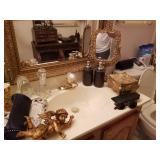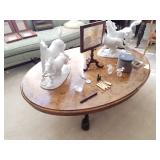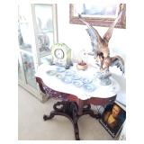 LARGE CURIOS CYBIS PORCELAIN (AND A LOT OF IT) HUTSHENREUTHER FIGURINES VTG MECHANICAL MUSICAL BIRD IN CAGE, AND IT WORKS WEDGWOOD ANSONIA CLOCKS AUSTRIAN PORTRAIT VASES ANTIQUE WOOD PLANTERS W PORCELAIN FLOWERS VTG TUFTED BENCH MORE ART CAST IRON VTG BANKS TIN TYPES VTG TOYS SOFAS LARGE ITALIAN ANIMAL FIGURINES (HUGE REALLY) QUACK MEDICAL SHOCK DEVICE (WORKS, FOUND OUT THE HARD WAY) RECORDS LUSTRES LARGE HUTSCHENREUTHER LION AND EAGLE FIGURINES MAJOLICA CANDELABRAS SPINET DESKS GEISHA PORCELAIN FIGURINES LAMPS MURANO GLASS