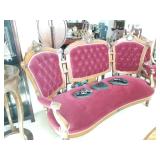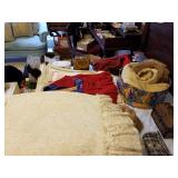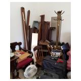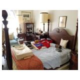 4 POST TWIN BEDS VTG CLOTHES ANTIQUE SETTEE AND MATCHING CHAIRS TRIANGLE CURIO TABLES GRANDAUGHTER CLOCK VTG CALIFORNIA COWHIDE LUGGAGE SET ANTIQUES