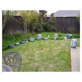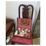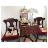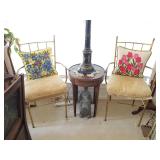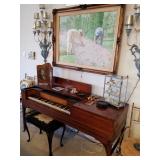 ORIGINAL ART PIANO FORTE ANTIQUE CHAIRS HOLLYWOOD REGENCY METAL CHAIRS BOOKS DEMITASSE CUPS AND SAUCERS CURIOS GARDEN SEATS
