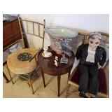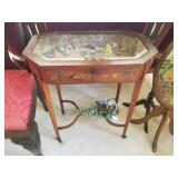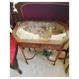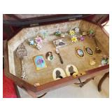 ANTIQUE FRENCH TABLE TOP CURIO W PORCELAIN INLAYS VTG PURSES TABLES PLANTERS