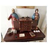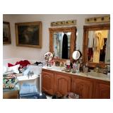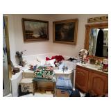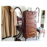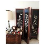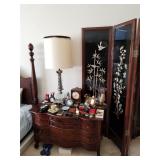 ANTIQUE CABINETS BEDS HATS MIC. ASIAN FIGURINES CRYSTAL LAMPS LARGE CHIPPENDALE FLOOR MIRROR MAGNIFICENT HIGHBOY DRESSER ANTIQUE LINGERIE CHEST, THE PAINTED DOORS BOTH OPEN WHEN YOU OPEN ONE IT IS BEAUTIFUL PARLOR SOFA LINENS ANTIQUE PAINTINGS CLOTHES FUR COATS GORGEOUS CURIOS CARVED ASIAN TRUNK, IT IS SO ORNATE