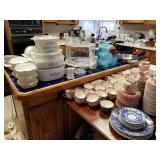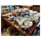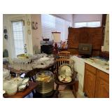 LARGE (LIKE 3 FEET TALL OR MORE) MAJOLICA SIGNED PARROTS MASSIVE FLATWARE CHEST (LIKE FOR A PLANTATION, OR A YACHT IT IS AS BIG OR BIGGER THAN SOME TABLES) TRANSFERWARE SETS TIFFIN GLASSWARE CRYSTAL CUT CRYSTAL AMERICAN BRILLIANT FRIDGE EASTLAKE ROLL TOP DESK VTG TRUNKS TABLES CHAIRS GLASSWARE EVERYWHERE BLUE AND WHITE ANTIQUE SALT GLAZE CHEESE DOMES IRON COLLECTION (TONS OF SKILLETS POTS, PANS MORE) PRIMITIVE WOOD ITEMS