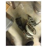 Items from three estates.... Partial list to include marble top lyre tables, marble top coffee table, full size bedroom suite, sofa and loveseat, with the wind lamps, antique clocks to include (6) gingerbread clocks, mantle clocks, international time recording clock, wall clocks, Duncan Phyfe drop side table, set of 4 ant chairs, cherry corner cabinet, book shelves, washstand, sofa table, curio cabinet, corner chelf, brass and glass shelf, butter mold, quilts, stoneware jugs, horse décor, carnival glass, vintage glassware, knicknacks, table lighters, avon bottles in boxes, boot scraper, bowl and pitcher, advertising store shelf, beautiful crocks, Victorian items, Martha Washington sewing cabinet, Large Winston patio furniture set, crab cooker, extension ladder, huge amount of fishing reels, rods, tackle, and boxes, mantis tiller, troybilt tiller/mulcher, Turkey cooker, computer cabinet, Rubbermaid cabinet, coolers, outdoor canopy tents, John Deere riding mower, small refridgerator, Stihl chain saw, carpentry and garden tools including skill saws, shovels, yard tools, hand tools, drills, sanders, much more. Grizzly Extreme Series Industrial band saw, Steel city saw dust vac, Delta Portable planer, Jointer, Ryobi table saw, bench grinder on stand, vises, small work bench, name brand power tools, craftsman tools, laser level, knife sharpener, dremel, socket sets, wagner paint roller, so much more! More pictures coming soon! Check Back often!