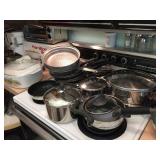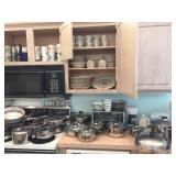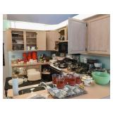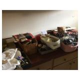Contents of house and garage. All appliances will remain with the house, which is for sale. Look for added photos on Wednesday night and a more complete list of items for sale as we finish prepping this house. There is a lot more to come. Bedroom sets, dining, living room, kitchen, bath linens, bed linens, collectibles, sewing machine, fabric, jewelry. Bolo ties collectible. Vintage two tier chrome utility table with red formica. Two aluminum folding chairs with scroll backs. Very cool. Loaded kitchen. Oneida, Wearever, Cuisine, Revere Ware. Pyrex, Fire King, Corelle, Corningware. Flatware, utensils, serving pieces, three sets of china. Noritake. Singer sewing machine 500A, table, notions, fabric, buttons, decorative trims. Patterns. |