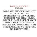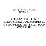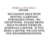 ALL SALES ARE FINAL. ALL ITEMS ARE SOLD "AS IS." THERE ARE NO REFUNDS OR RETURNS. BABE & SNOOKS ESTATE SALES DOES NOT GUARANTEE THE CONDITION OR AUTHENTICITY OF ANY ITEM. IT IS THE BUYER'S RESPONSIBILITY TO CAREFULLY CHECK ITEMS BEFORE PURCHASE.