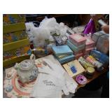 Amazing Storage full of Party rental epuipment ; loads of linens, dishes and dinner service for 400, bolts of new material,pedastals, assorted table decorations, tablecloths and napkins, chair covers,glassware, table overlays, fish bowl vases , tall center table vases, dance floor, candelabrias, too much to mention.. we will add to the descriptions and pictures as we set up the sale , the week before the sale. Tell anyone who throws parties .. Do it your self Brides, Party halls .. This will be a great fun sale!. |