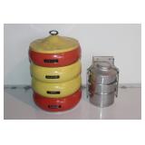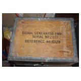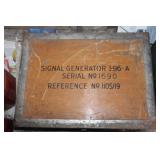 From the Garage Lot of gas cans incl. plastic, and metal- vintage shell cans, Golden West oil can, NOS oil cans incl. Valvolinel, nice pair of car ramps, hand truck, (2) Wooden step ladders, (3) Aluminum extension ladders, Metal car ramps approx. 15ft, welding mask, Vintage Colman cooler with bottle openers on side, Huskee Universal Lawn Mower Lift, safety kit, (4) Signal Generator Parts boxes with misc. parts. AC Delco 2 ton trolly jack, Lock ring plyers, riveting set, chain binders. Sears/Craftsman grinding wheel,