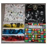 Hunting, Fishing and Fun 10 point buck mount w/ 1952 tag, other buck mounts, Fishing lures, lines, reels, poles, nets, etc. Stroh’s Beer Detroit MI Beer glass, Steel wheel rolling cart, (2) Spoked steel wagon wheels, Several adult mountain bikes & 1 kids bike misc. brands incl. Huffy, pair of skis, trampoline, Heaven in a Roll plastic food truck sign, small record collection incl. Jimmy Hendricks, the Doors, Led Zeppelin, Bob Dylan, etc. Victor Victrola