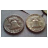 1928 Red Seal $2 Bill , 1879 Silver Dollar, 1880 Silver Dollar, 3-. 1921 Silver Dollar, 1923 Silver Dollar , 1927 Silver Dollar, 1936 Walking Liberty Half Dollar , 1945 Walking Liberty Half Dollar, 1952 Franklin Half Dollar , 1954 Franklin Half Dollar, 1954 Franklin Half Dollar , 1960 Franklin Half Dollar , 1962 Franklin Half Dollar, 1963` Franklin Half Dollar , 1943 Quarter, 2-1957 & 1-1958 Quarters, 3- 1962 Quarters,. 3-1963 Quarters, 15- 1964 Quarters, 4 Buffalo Nickels Worn, 1912 2 Cent Piece,. 1900 Indian Head Penny, 1898 Indian Head Penny,. 1902 Indian Head Penny,. 1893 Indian Head Penny, 1898 Indian Head Penny, 1896 Indian Head Penny ,189? Indian Head Penny, 2- Indian Head Pennies Badly Worn