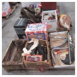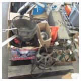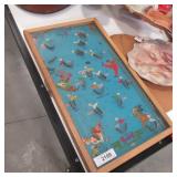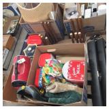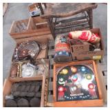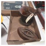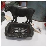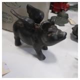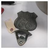 Iron- flying pig, cow soap dish, padlock w, key, Route 66 bottle opener