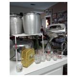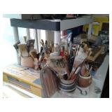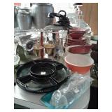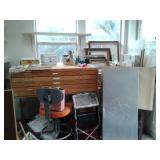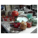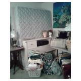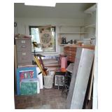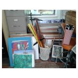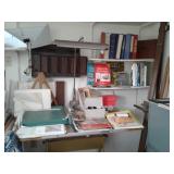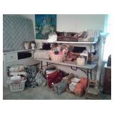 This home has some great mid century pieces. Living Room: Mid-century modern sectional that is in great shape, vintage ottoman, a large amount of home decor, a beautiful vintage Chandelier Floor Lamp, several vintage bar carts, Silverplate, vintage bar ware, precious moments figurines, Asian décor, brass bells, vintage lamps, and more. There are several mid century magazine racks, books, CD's, DVD's, pictures, several trunks, cedar lined hope chest, a record player and records, 45"s and albums.... Kitchen: Russell Wright china, Fransican Rose Dinnerware, small appliances, pots & pans, Vintage glasses in blue, cream, pink and green. There is a section of vintage kitchenware - Corn Flower corning ware, vintage mixer, covered cake plate, old iron, chip and dip dish, vintage metal canisters, plastic napkin holder and more.... There is a Whirlpool side by side refrigerator and lots of small appliances, a tea cart, table with leaf and chairs . Bedroom: Sewing, bolts of fabric, fabric pieces, designer pillows, linens, rolled area rugs. vintage bookcase headboard, vintage jewelry, handbags, small oak chest with marble top, vanity table, small painted red chest... Bedroom: Pumpkins in all sizes and colors, art supplies, Featherweight singer sewing machine manufactured in 1956 - a 221, art work, pictures., frames, cameras, binoculars, vintage slide projector, clothing, shoes, luggage, hats, knitting supplies, more sewing equipment, slide preview equipment, wicker baskets and more décor. Office: Office supplies, more designer lamps, lamp shades. 50"s wall lamp, designer vases, designer décor, electric lounge chair, more décor, sea shells, office supplies and office accessories, 2 small file cabinets, wall décor and much more. Laundry Room: GE electric Washer and Dryer (2 yrs old), Cleaning supplies, flashlights, cat supplies, plastic hangers, outdoor garden supplies, plastic shoe boxes and totes. Utility Room: GE Refrigerator, GE Upright Freezer, tools, metal shelving, folding metal ladder, card tables, card table chairs, camping equipment, sleeping bags, Christmas décor, painting supplies, out door garden products, home supplies, and more. Extension cords, power strips, light bulbs and more cleaning supplies. Car supplies, totes and storage shelving. Outdoor art studio: there are several easels and drafting tables, paint and art supplies, brushes, matting supplies, file cabinets, map/drawing cabinet, drawing tables, paper cutter, artist books, art pads, acrylic and oil paints, framing supplies, staple gun, oil brushes, pen and ink supplies and paintings. There is also a Logan Mat cutter, and Rembrandt pastels. Shed: Outdoor garden equipment, metal carts, tools, Expedition Bike, Mongoose bike, Vintage bike with rear baskets, tree trimmer and more tools. There is also outdoor vintage décor, flower pots, table and chairs, self standing swing with top, grill and yard art. We have fun collector pieces, games, pictures and much more.