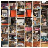 Clothes – men (M & L) & women (L) Vintage hats 50’s Hope chest, cedar Vintage king size headboard 9 drawer dresser, mens' dresser and night stand 2 Adjustable twin mattresses; with separate remotes 70’s gentlemen’s rack/valet Various Story book Dolls, some w/ceramic face and hands 2 Portable SLEEP NUMBER Select comfort Bed in a Bag Dorm beds, twin Vintage Puzzles, games, slot cars Vintage Wooden spinning tops Toiletries Linens, blankets, towels, sheets Metal steelcase desk TONS OF Books and boxes of various magazines Steelcase Computer desk Gateway computer and monitor; keyboard and mouse 3 wooden book cases Iron w/glass top end table Vintage Schwinn exercise bike Crafts, craft supplies, yarn, bead-making, and craft books Panosonic stereo Receiver 3 drawer vintage dresser Oak computer desk 4 drawer metal file cabinet 3 Metal storage cabinets Storage bins for crafts, etc. Power tools – electric sanders and saws Leather tooling Vintage Doll trunks and clothes Records – 45’s, 33 ½, 78 Cassettes in storage drawers Ornate picture frames Large framed pictures Fabric, yarn, sewing supplies Loose shells (TONS of seashells) - boxes! Vintage Singer child's sewing machine Vintage lamp (light up base) – Red whip stitched lamp shade) Vintage end table Glass dining room light vintage Hanging swag lamps Speakers