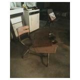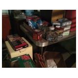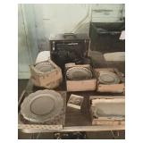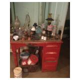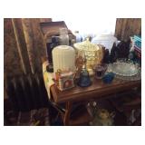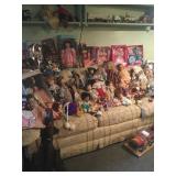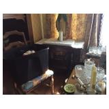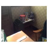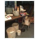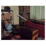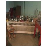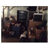 Vintage Detroit Jewel stove Fabric chair Small tables Collectables glassware Doll collection Vintage dolls Tiara glass Dining table with chairs Figurines Wall clock Vintage sewing machine Shirley Temple glass Vintage baby shoe Keys Vintage purse Vintage dressing table and stool and chest and nightstand Vintage dark wood bed, chest and dresser Small organ 4 dining chairs Cabinets Chest freezer, refrigerator, washer, dryer and stove Work bench Doll high chair Tins Holiday Collectables plates File cabinets Art Patio furniture Bench Bike Yard tools Ladders Swamp cooler