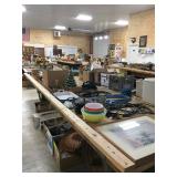 Shop/Yard: Several Flats of Hardware, Bench Grinder, Ladders, Wrench Sets, Several Flats of Hand Tools.