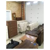 Furniture: Several Twin and Queen Bed Frames, Brass Day Bed, Like New Couches and Loveseats, Several Nice Dinning Room Table and Chairs, Buffets, Dressers, 28” Flat Screen TV, Bookshelves, Upright Kitchen Cabinet, Oak Grandfather Clock, Oak China Hutch, Primitive Pie Safe, Parlor Tables, Lamps, Oak Secretary, End Tables, Night Stands, Record Cabinets, Telephone Stands