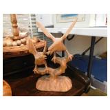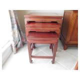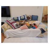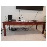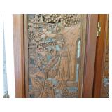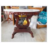 Curio cabinet, Iron bed, Carved bar, Dinning table and chairs, Large display cabinets, Oak china cabinet, Chevelle mirror, Nesting tables, Carved dining room set, Sofa tables, Coffee tables, Marble top table, Lane cedar chests, Office desk & chair, Carved 4 panel room divider, Oak washstand & 3 drawer chest, Quilt racks, Nightstands, End tables, Living room furniture, Stanley bedroom set, Breakfast table and chairs, Mahogany gossip bench. Much more to un-pack, so many tresures not photographed.