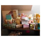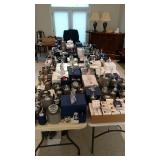 Swarovski crystals - 300 plus, Hummels, Lladro, Capodimonte, Carved cameo conch shells, Depression glass, Cloisonne, Fenton, Jade/Soapstone trees, Beautiful purses, Delft, Cuckoo clock, Lilliput Lane houses, Wedgwood, Chrysler Town & Country Lxi van, Jewelry, Tom Clark Betsy Ross gnome, Coal Port, Bossons wall ornaments, Records, Goebel nativity scene, Pottery, Wagner Ware cast iron, Signed art, Bob Timberlake, Avon, Lamps, Horn, Rosenthal and Noritake china, Glassware, Yard art, Oil lamps, Linens, Kitchenware, Clothes.