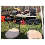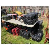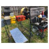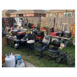 Garage/Tools/Outdoors: Large air compressor, Multiple rolling tool chests, Welding supplies, Grinders, Sanders, Polishers, Drills, Dremel, Metal shop tables, Work benches, Tool storage systems, Small job boxes by Rigid & Milwaukee, 55 Gallon Steel Drums, Sheet metal, Iron & Aluminum, Powder coat system, Cordless power tools by Milwaukee, Misc power tools by DeWalt, Rigid & Makita, Several job site radio's, Lawnmowers, Tillers, Trimmers, Shop vac, Hand tools, Electrical tools, Vises, Clamps, Sand paper, Grinding Discs, Paint sprayers, Large shop fans & lighting, Gas cans, Hose reel, Shop carts, Shop stools, Creepers, Socket sets, Drill bits, Car audio, LG Window unit a/c, Sharpening stones, Coleman lanterns, Misc camping gear, Band saw, Miter saws, Reciprocating saws, Ladders, Wheel barrows, Yard tools, Jack stands, Fertilizer spreader, Water hoses, Ice chests & water coolers and basically every other tool imaginable! Check back for additional items and photo's as we get closer to the sale dates!