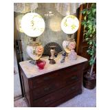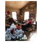 Please look forward to: Antique & Vintage Clocks, Fine Mahogany furniture, Accent Benches, Primitive & Rustic original furnishings, Wicker, Antique Pottery, Art Deco framed prints, Oil Paintings, Chandeliers, Crystal candelabras, Vintage BB Gun, Old Tin Type photos, Original Victorian Era Antiques, Parlor Sofa, Drop Front Secretary, Unique Curio cabinets, Fine mahogany desks, Duncan Phyfe Formal Dining Room, Burl accented furniture, Marble top accent furniture, Wood carved sculpture, Hand painted Bavarian porcelain, Gone with the Wind style Globe Lamps, Oriental Rugs, Sterling silver collector spoons, Unique retro floor fan, Pocket Knives, Large assortment of Jewelry, Stained glass, Tiffany style lamps, Antique needlepoint art, Fireking, Pyrex, Antique rocking chairs, Blue Delft, Old toys, Furs, Sewing machine & notions, Mid Century Modern, Bedroom furniture, Outdoor, Refrigerator, Washer & Dryer, Deep Freezer, Small appliances, Depression glass, Fenton Hobnail, Carnival glass, Dresden, Asian accents & decor, Vintage bar wares, Fine China, Silver plate, Flatware, Fine cutlery, Cookware, Antique linens, Bedding, Designer clothing & handbags, Footwear, Tools, Yard art, Metal wall art, Vintage Americana, Quilts, Antique Lamps, Oil Lamps, Decor, Glass front Oak Bookcase, Old desk fans, Eastlake Furniture, Dressers, Chests, Accent side tables, Electronics, Misc Collectibles, Record Albums, Books, Office furniture, Kitchen-wares, Household items, Vintage toys, Brass decor, Mirrors, Light fixtures, Vases, Cup & saucer collection, Fireplace accessories & so much more!!