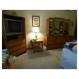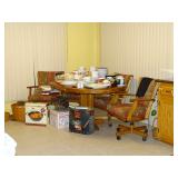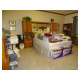 FURNITURE and HOME DECOR: Bulova Piermont grandfather clock, Wambold oak dining room set, Glynda Turley art, Barbara Mock art, live plants, media cabinets, oak end tables, Claude Monet Art Institute artwork, Renoir prints, small display cabinet, rattan shelving unit, kitchen table and chairs, bookshelves, floor lamps, table lamps, pool table light, Oak bedroom set with dressers and nightstands, oak jewelry chest, desk, office chairs, file cabinet, oil paintings, wall art, silk floral arrangements, Temperpedic bed and more.