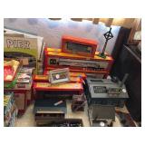 HO train cars by Lionel, Tyco train cars in original boxes, Plasticville buildings in original boxes, train tracks, transformers and more