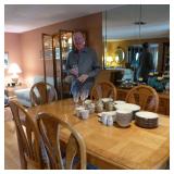Upholstered sectional Brass & glass coffee and end tables Tall glass curio cabinets Lane Mid-Century Modern bedroom set: dresser/mirror, full size bed with headboard/nightstands, cedar chest with upholstered top Round wrought iron/wood dining table with leaf, 4 chairs Upholstered occasional chair 2 Mid-Century modern bookcases Entertainment center 2 work benches; assorted utility cabinets Thomasville dining room table, chairs, buffet and bar Vintage wicker chaise, plant stand, rolling cart Large, lighted Tranquil floor fountain Card table and 4 folding chairsChina sets: Lenox Charleston, Pfaltzgraff, Oneida Basket Weave, Bavarian luncheon set Lenox stemware, pattern Charleston Satinique stainless flatware; Oneida Act One stainless flatware Train: HO and M scale tracks; HO train set; accessories Gator items for pups and human fans Electronics: commercial-grade A/V multi-media equipment. 8 mm Betamax, DVI, more. 16 mm, digital and other cameras with high end lenses; TV, turntable Portable fireplace/heater Books, CDs, VCRs, cassettes Linens, esp. decorative pillows Clothing, including ski ware, faux furs Coastal pottery, decorative art pieces; liquor decanters Large mortar & pestle collection; apothecary-related art and decorative items Boyd bears and other bears, games Precor exercise bicycle Kitchen small appliances, cook ware, utensils Hand and power tools; hardware Garage refrigerator Large volume of potted plants (many succulents); gardening tools & supplies; also artificial arrangements Small concrete bench and other yard art decorative items Area rugs, lamps Multi-holiday decorations