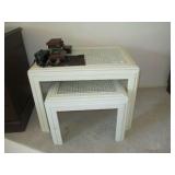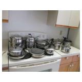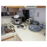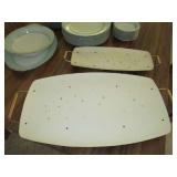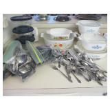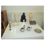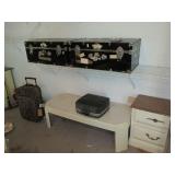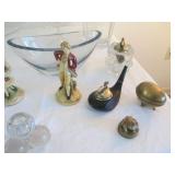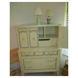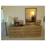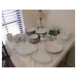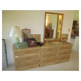 STERLING, DECO BAR, STEUBEN GLASS CENTERPIECE BOWL, JENSEN SERVER, SMALL DINING SET, SET OF NORITAKE CHINA, 50'S FLOOR LAMP, QUEEN BED, WICKER DRESSER & CHEST, LAMPS, DESK, BOOKS, BOOKENDS, LINENS, LOT OF KITCHENWARE |