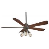 56" Alva 4 Blade Ceiling Fan with Remote, Finish: Dark Brown. 14 Degree blade pitch. Room Size: Large rooms (up to 18 X 20). Mounting: Downrod. Light Kit Included: Yes. Fan Body Width - Side to Side 56 ''. NEW IN FACTORY CARTON, PREVIEW FOR COMPLETE SATISFACTION. RETAIL PRICE $899.85 **(40)** |