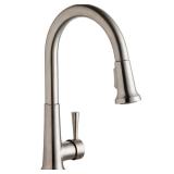 LK6000CR Pull Down Single Handle Kitchen Faucet, Finish: Lustrous Steel. Elkay faucets combine performance and style. From the kitchen to the mudroom, they have faucets for a variety of applications. Select from features like flexible spouts and pull-down sprays that make it easier to take on the tasks you do every day. NEW IN FACTORY CARTON, PREVIEW FOR COMPLETE SATISFACTION. RETAIL PRICE $458.00 **(98)** |