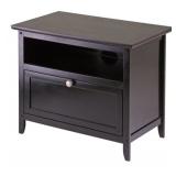 Zara 25" TV Stand. Color: Dark espresso. Spot clean. Non-toxic: Yes. Number of Drawers: 1. Overall 18.9'' H x 25'' W x 14.96'' D. Shelf 6.4'' H. TV Size Accommodated 32". Holds up to 32" flat screen TV. Height from floor to the bottom of the stand: 4". NEW IN FACTORY CARTON, PREVIEW FOR COMPLETE SATISFACTION. RETAIL PRICE $410.00 **(93)** |