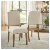 (Set of Two) Pompon Nailhead Side Chair. Upholstery: Linen - Beige. Nailhead trim finish: Oil Rubbed Bronze. Leg Color: Antique Bronze. Overall 40'' H x 24.5'' W x 19.5'' D. Seat 19'' H x 19.5'' W x 18.5'' D. Cushion foam thickness: 5.5''. Back rest width: 24.50". NEW IN FACTORY CARTON, PREVIEW FOR COMPLETE SATISFACTION. RETAIL PRICE $379.00 **(25)** |