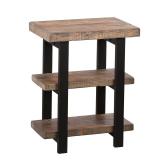 Somers End Table. Rustic Natural finish. Top Material Details: Solid Birch. Base Material Details: Metal. Overall 27'' H x 20'' W x 17'' D. Shelf 10'' H. Assembly Required: Yes. NEW IN FACTORY CARTON, PREVIEW FOR COMPLETE SATISFACTION. RETAIL PRICE $211.99 **(14)** |