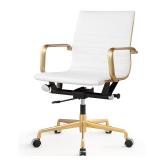 Vegan Leather Office Chair. Color: White. Frame Finish: Gold. The wheels are made of caster aluminum. The chair is shipped with the arms on it. Lever: Yes. Swivel: Yes. Height Adjustable Armrests- Min Height 24.2 ''. Other Dimensions- Overall 22.23'' W x 23.4'' D. Minimum Overall Height - Top to Bottom 33.93 ''. Maximum Overall Height - Top to Bottom 36.66 ''. NEW IN FACTORY CARTON, PREVIEW FOR COMPLETE SATISFACTION. RETAIL PRICE $196.99 **(60)** |