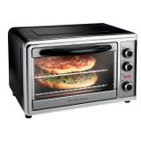 Countertop Convection & Rotisserie Oven. Four baking modes, which are: Bake, broil, convection and roast. Convection setting bakes faster and more evenly than traditional oven, Bake and broil settings with 2 hour timer. Maximum versatility including rotisserie. Does not get hot enough to damage countertops. Wattage: 1500Watt. Overall 13.11'' H x 20.62'' W x 16.54'' D. Interior 10.5'' H x 14'' W x 13.5'' D. Cord Length 35 ''. Finish: Black. Primary Material: Steel. NEW IN FACTORY CARTON, PREVIEW FOR COMPLETE SATISFACTION. RETAIL PRICE $119.99 **(11)** |