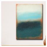 Abstract Scent of Rain Framed Print on Canvas. Size: 20" H x 16" W x 1.5" D. Color: Blue/Green/Orange. NEW IN FACTORY CARTON, PREVIEW FOR COMPLETE SATISFACTION. RETAIL PRICE $74.25 **(12)** |