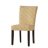 (Set of Two) Lea Parsons Chair. Upholstery: Orange Yellow. Material: Rubberwood frame, spring, foam fill and polyester upholstery. 18.5" Seat height. Legs feature an espresso finish. Spring Seat. Overall 38.5'' H x 18.5'' W x 24'' D. Seat 18'' H x 18.5'' W x 17'' D. Back Height: 21". NEW IN FACTORY CARTON, PREVIEW FOR COMPLETE SATISFACTION. RETAIL PRICE $299.99 **(20)** |