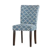 (Set of Two) Lea Parsons Chair. Upholstery: Heritage Blue. Material: Rubberwood frame, spring, foam fill and polyester upholstery. 18.5" Seat height. Legs feature an espresso finish. Spring Seat. Overall 38.5'' H x 18.5'' W x 24'' D. Seat 18'' H x 18.5'' W x 17'' D. Back Height: 21". NEW IN FACTORY CARTON, PREVIEW FOR COMPLETE SATISFACTION. RETAIL PRICE $299.99 **(21)** |