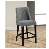 Rouet Pinstripe Counter 26.4" Bar Stool. Upholstery color: Gray stripe. Seat construction: Webbing construction with polyurethane foam. Birch wood legs with black finish. Brass nails with silver ring on the back. Base Color: Black. Seat Color: Gray. Assembly Required: No. Overall 41.5'' H x 19.5'' W x 24.2'' D. Seat 18.5'' W x 18.5'' D. Seat Height - Floor to Seat 26.4 ''. NEW IN FACTORY CARTON, PREVIEW FOR COMPLETE SATISFACTION. RETAIL PRICE $259.99 **(24)** |