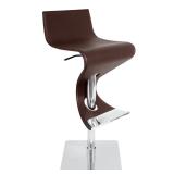 Cambria Adjustable Height Swivel Bar Stool. Upholstery: Coffee. Material: Stainless steel and faux leather. Curvaceous, sturdy bar stool. Footrest. Stool swivels 360°. Base Color: Chrome. Overall 32'' H x 16'' W x 16'' D. Overall Maximum Height - Top to Bottom 39 ''. Seat Height - Floor to Seat 24 ''. Maximum Seat Height - Floor to Seat 31 ''. Minimum Seat Height 24 ''. NEW IN FACTORY CARTON, PREVIEW FOR COMPLETE SATISFACTION. RETAIL PRICE $446.60 **(27)** |