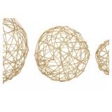 Metal Sphere 3 Piece Sculpture Set. Finish: Gold. Overall - Small: 16'' H x 16'' W x 16'' D. Overall - Large: 18'' H x 18'' W x 18'' D. Set includes 3 spherical sculptures. Primary Material: Metal. Material Details: Iron. NEW IN FACTORY CARTON, PREVIEW FOR COMPLETE SATISFACTION. RETAIL PRICE $45.00 **(30)** |