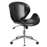 Mid-Back Mahogany Wood Swivel Conference Chair in Black Leather. Assembly Required: Yes. Back Material: Faux Leather. Chair Type: Desk Chair. Color: Black. Color/Finish: Black Leather/Mahogany Frame. Assembled Depth (in.) 26 in. Assembled Height (in.) 32 in. Assembled Width (in.) 21.50 in. Maximum Seat Depth (in.) 19.50. Maximum Seat Height (in.) 20 in. Minimum Seat Depth (in.) 19.50 in. Minimum Seat Height (in.) 17 in. Seat Width (in.) 21in. NEW IN FACTORY CARTON, PREVIEW FOR COMPLETE SATISFACTION. RETAIL PRICE $126.19 **(32)** |