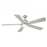 Trade Winds 52" Ceiling Fan w/Light in Brushed Nickel Finish. This fan offers cool contemporary style, an integrated LED downlight with frosted opal glass shade, a brushed nickel finish and reversible blades so you can choose from silver or chestnut. Width 52". Height 15.35". Blade Pitch 13.5". Bulb Included: Yes. NEW IN FACTORY CARTON, PREVIEW FOR COMPLETE SATISFACTION. RETAIL PRICE $270.00 **(33)** |