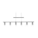 Eos 6-Light Kitchen Island Pendant. Stainless steel bars, double thin coated steel wires. CRI: 75. Bulb type: 3W LED bulb. Eco-friendly. Color temperature: 3000K. Lumens: 280. Length: 72 Inches. Fixture 40'' H x 39.25'' W x 2.5'' D. Shade 3.25'' H x 1.25'' W x 1.25'' D. Ceiling Mount: 1.75" H x 9" W x 4.5" D. NEW IN FACTORY CARTON, PREVIEW FOR COMPLETE SATISFACTION. RETAIL PRICE $350.00 **(37)** |