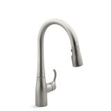 Simplice Single-Hole Kitchen Sink Faucet with 15-3/8" Pull-Down Spout, Docknetik Magnetic Docking System, ProMotion, MasterClean and A 3-Function Sprayhead Featuring The New Sweep Spray. Finish: Vibrant Stainless. Material: Stainless Steel. Activation technology: Touch. NEW IN FACTORY CARTON, PREVIEW FOR COMPLETE SATISFACTION. RETAIL PRICE $378.00 **(83)** |